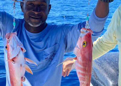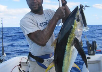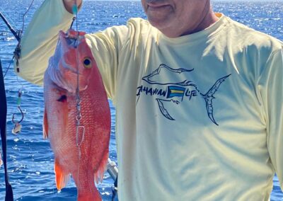 Reef Fish at 20–80 feet deep. Experience Bahamian yo-yo line fishing! The competition gets hot! Easy to catch, and we clean. It’s a great fishing trip in search of Lean Snapper, Yellow Tail Snapper, Trigger Fish, Grunts, Red Hinds, Mutton Snapper, Small Barracuda, African Pompano and more.